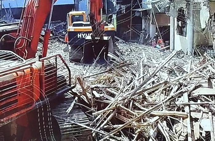 Progresnya telah mencapai 75%. Petugas sudah membersihkan puing bangunan dengan bantuan ekskavator, kemudian jika ditemukan tanda-tanda adanya korban, akan dilakukan proses ekstrikasi material. (REL)