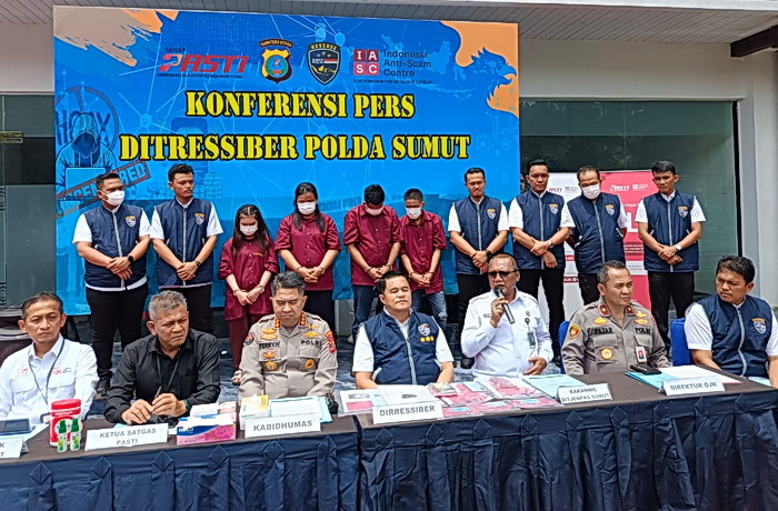 “Perlu kami sampaikan secara garis besar bahwa ini merupakan kejahatan scamming dengan memanipulasi data,” sebut Direktur Siber Polda Sumut, Kombes Pol Doni Sembiring didampingi Kabid Humas, Kombes Pol Ferry Walintukan saat rilis kasus, Rabu (15/10/2025).