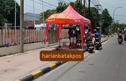Pantauan awak media, Rabu (11/3/2026) manajemen PT Sinar Sosro memajangkan produknya di trotoar jalan. Setiap pembeli yang berhenti, dipastikan bisa saja membahayakan pengendara lainnya. Karena berhenti di bahu jalan.(BP7)